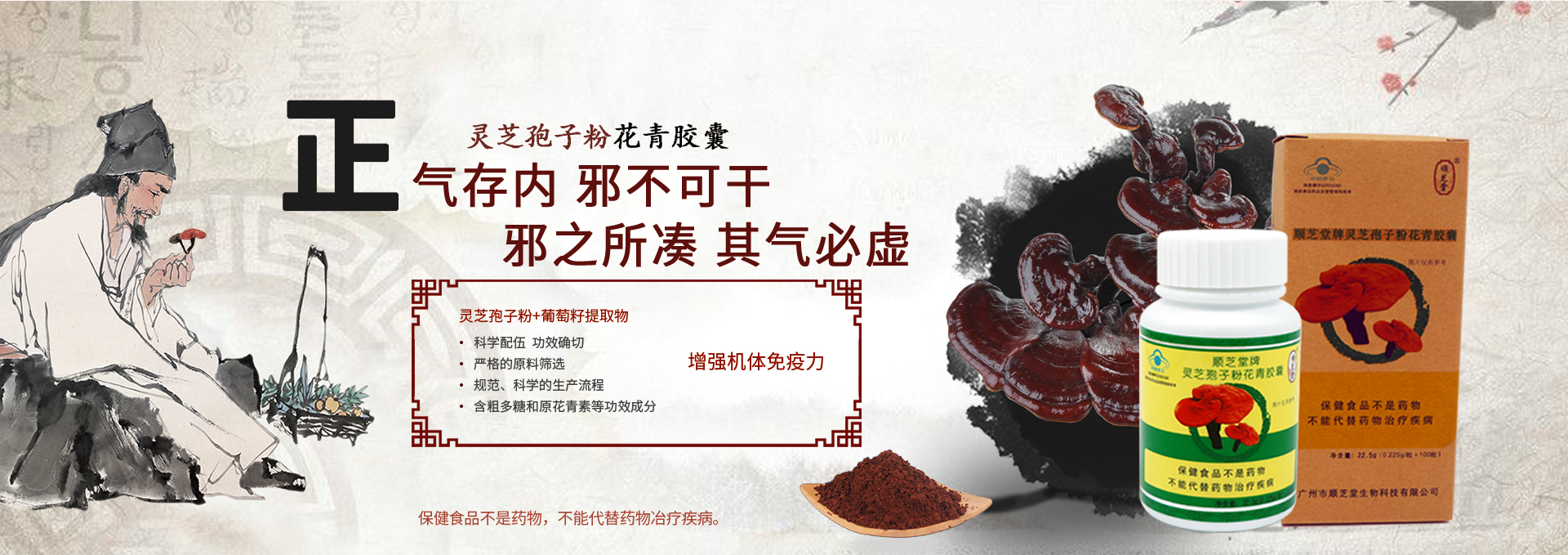 廣州市順芝堂生物科技有限公司成立于2003年,是經(jīng)國(guó)家工商局批準(zhǔn),以弘揚(yáng)中醫(yī)藥養(yǎng)生文化,從事生命健康產(chǎn)業(yè),集科研開發(fā)、健康咨詢、生產(chǎn)銷售于一體的科技企業(yè)。 公司以大力弘揚(yáng)中醫(yī)藥養(yǎng)生文化,實(shí)現(xiàn)“健康青春順芝堂”的目標(biāo)為企業(yè)宗旨;堅(jiān)持“以人為本,追求卓越、臻于至善”的企業(yè)精神;探索實(shí)踐產(chǎn)品與技術(shù)相結(jié)合的順芝堂特色的養(yǎng)生之路。遵循“讓消費(fèi)者獲得健康、讓經(jīng)營(yíng)者獲得利益、讓企業(yè)得到發(fā)展”三個(gè)有利的經(jīng)營(yíng)原則,堅(jiān)持以“科技是第一生產(chǎn)力”理論為指導(dǎo),不斷研發(fā)出適應(yīng)市場(chǎng)需求的的高科技、高品質(zhì)、高功效的系列產(chǎn)品;